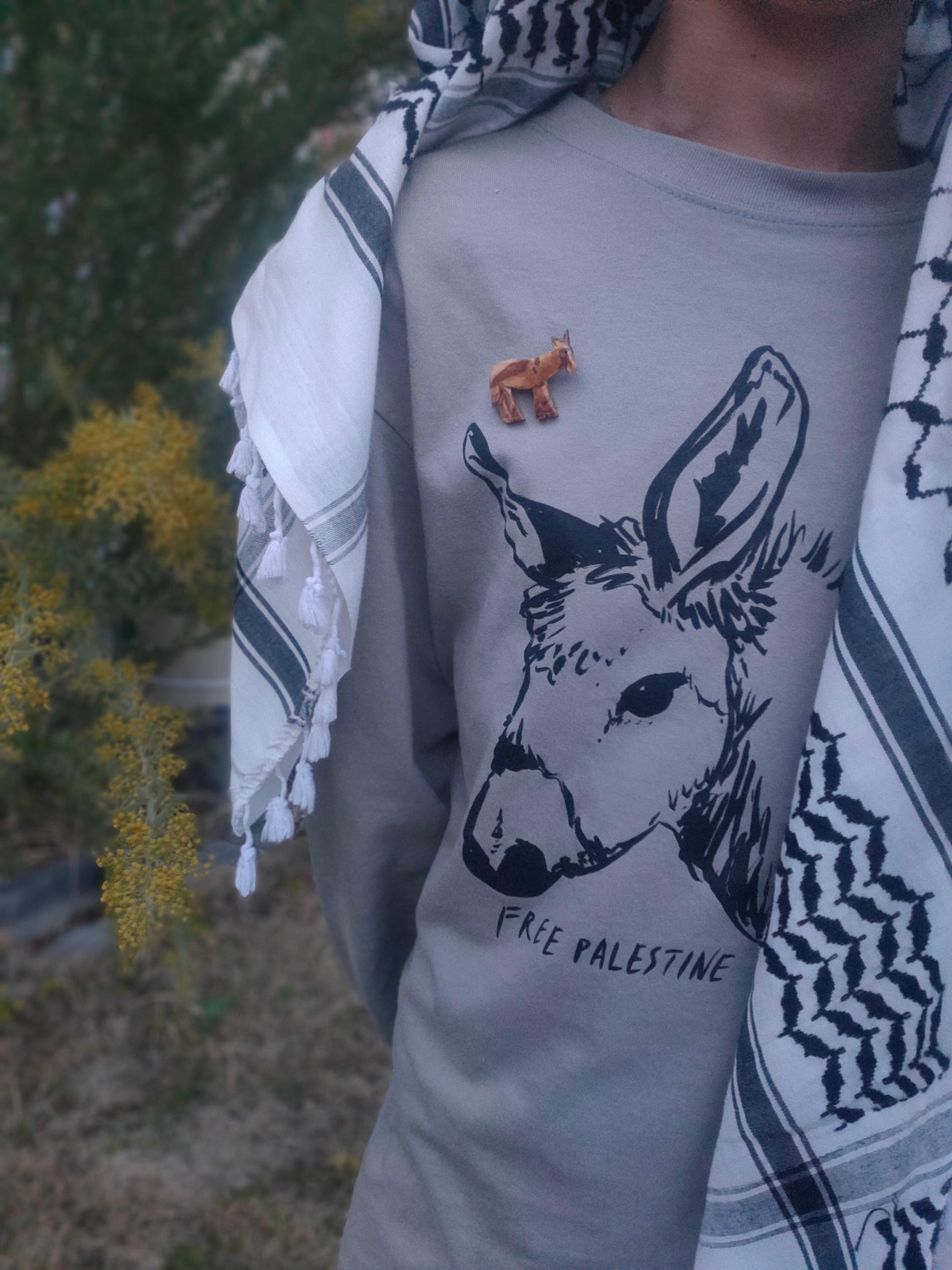 樹齢50年以上のオリーブ木でつくったロバのブローチ