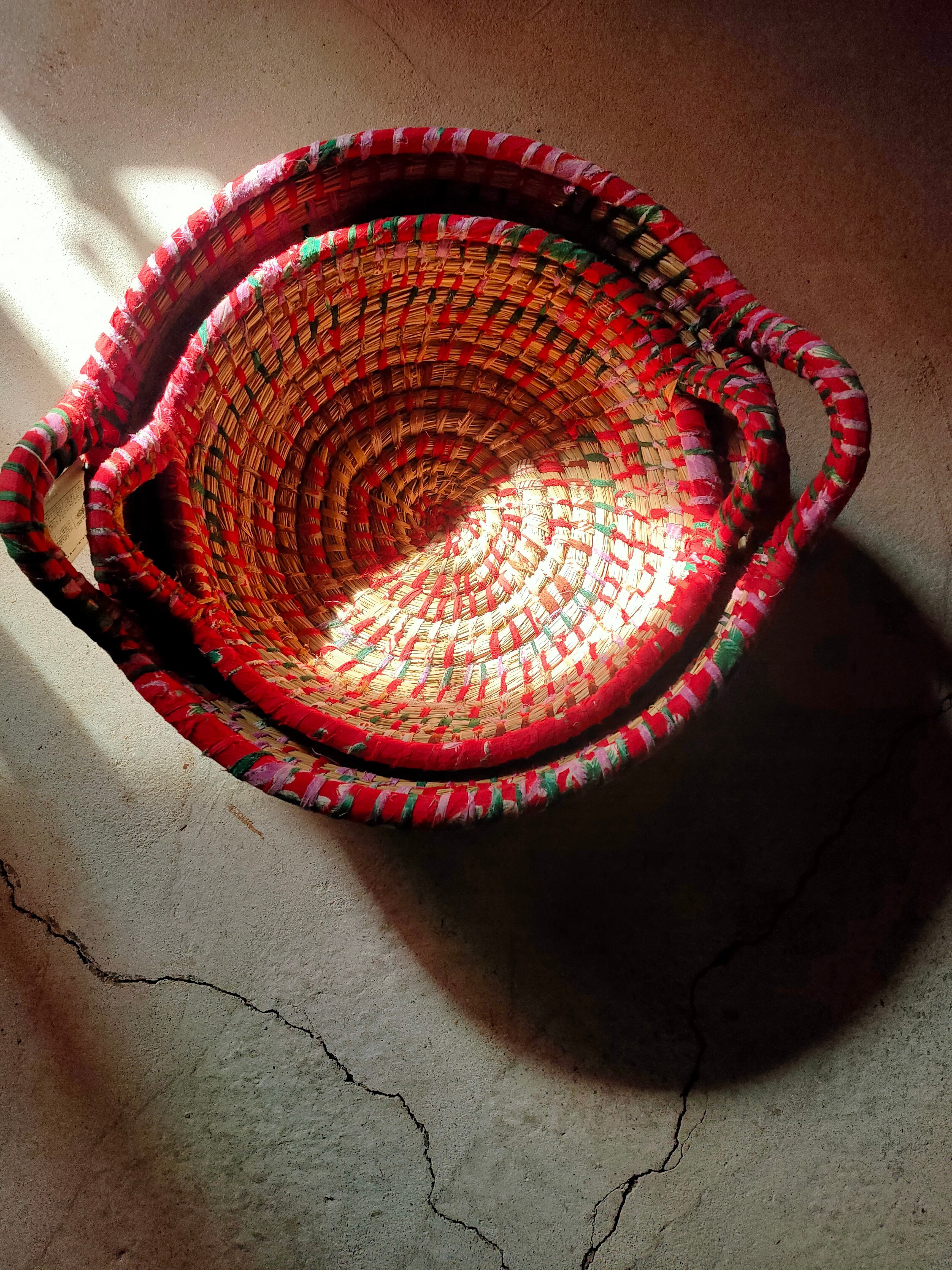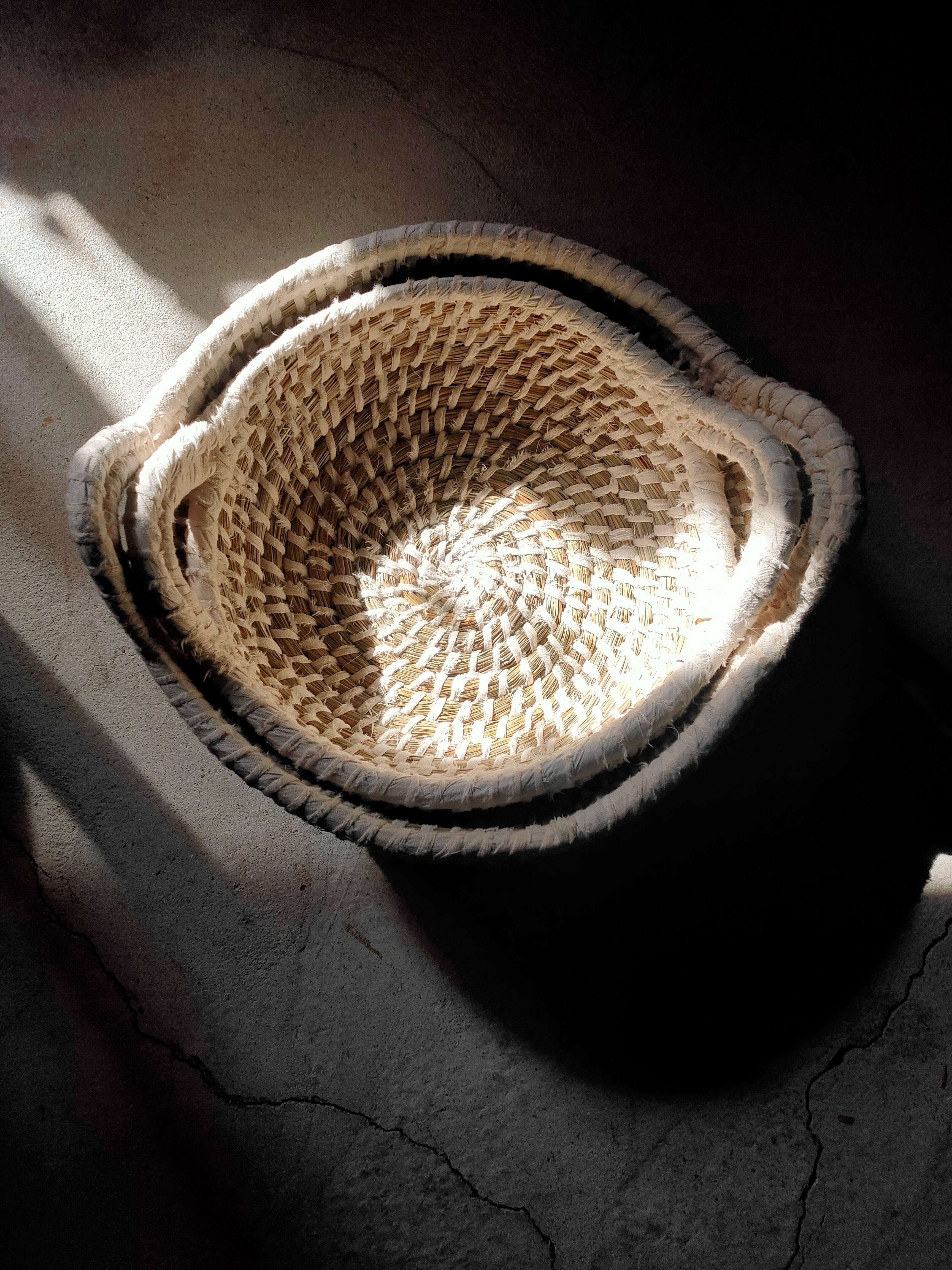 人気のカイザの手編みカゴ2個セットの再入荷です。