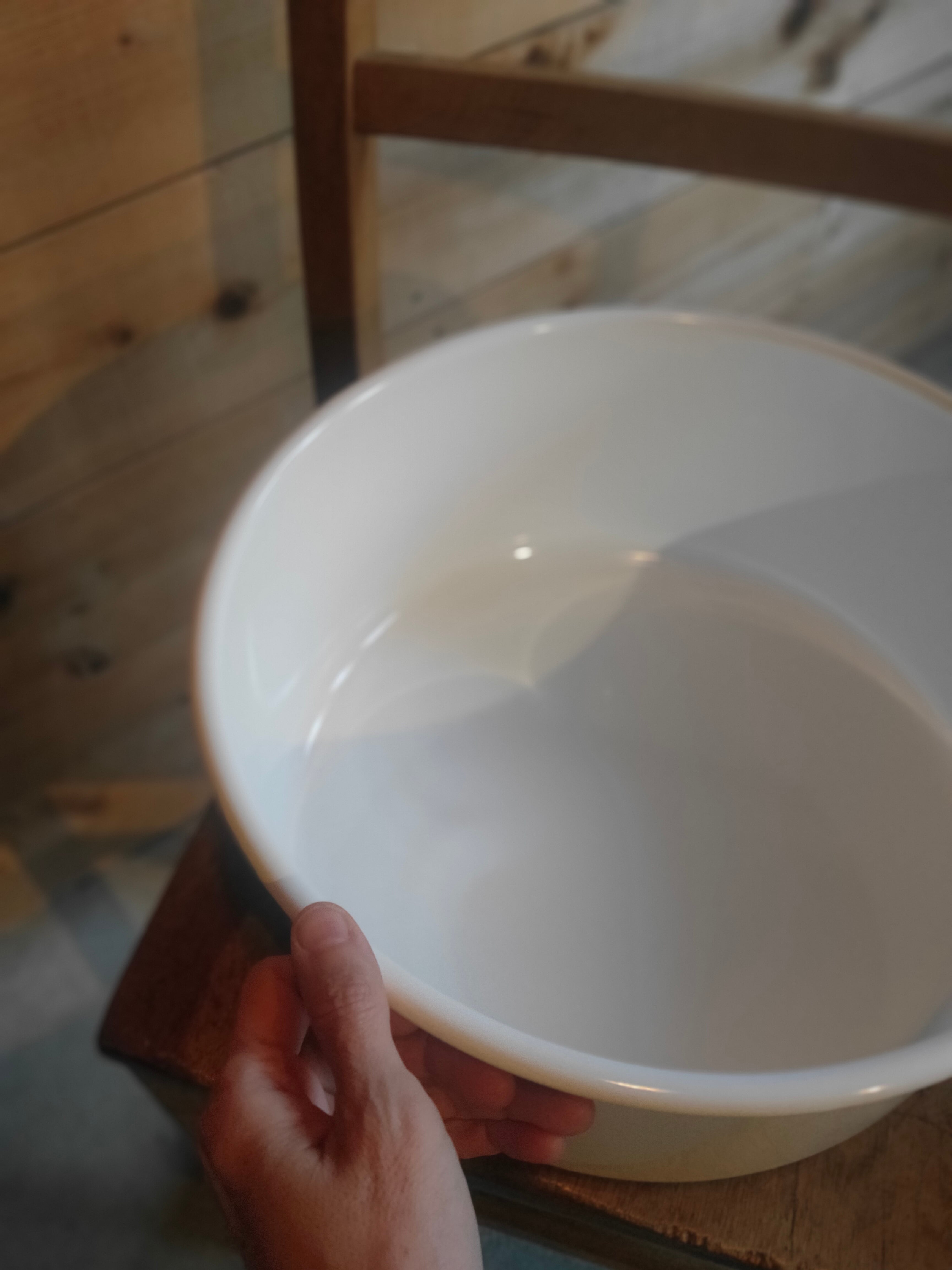 台所、シンク、お風呂場など、大きな鍋として、用途に合わせて活用できスペースを有効に使える取っ手のない丸型の桶。